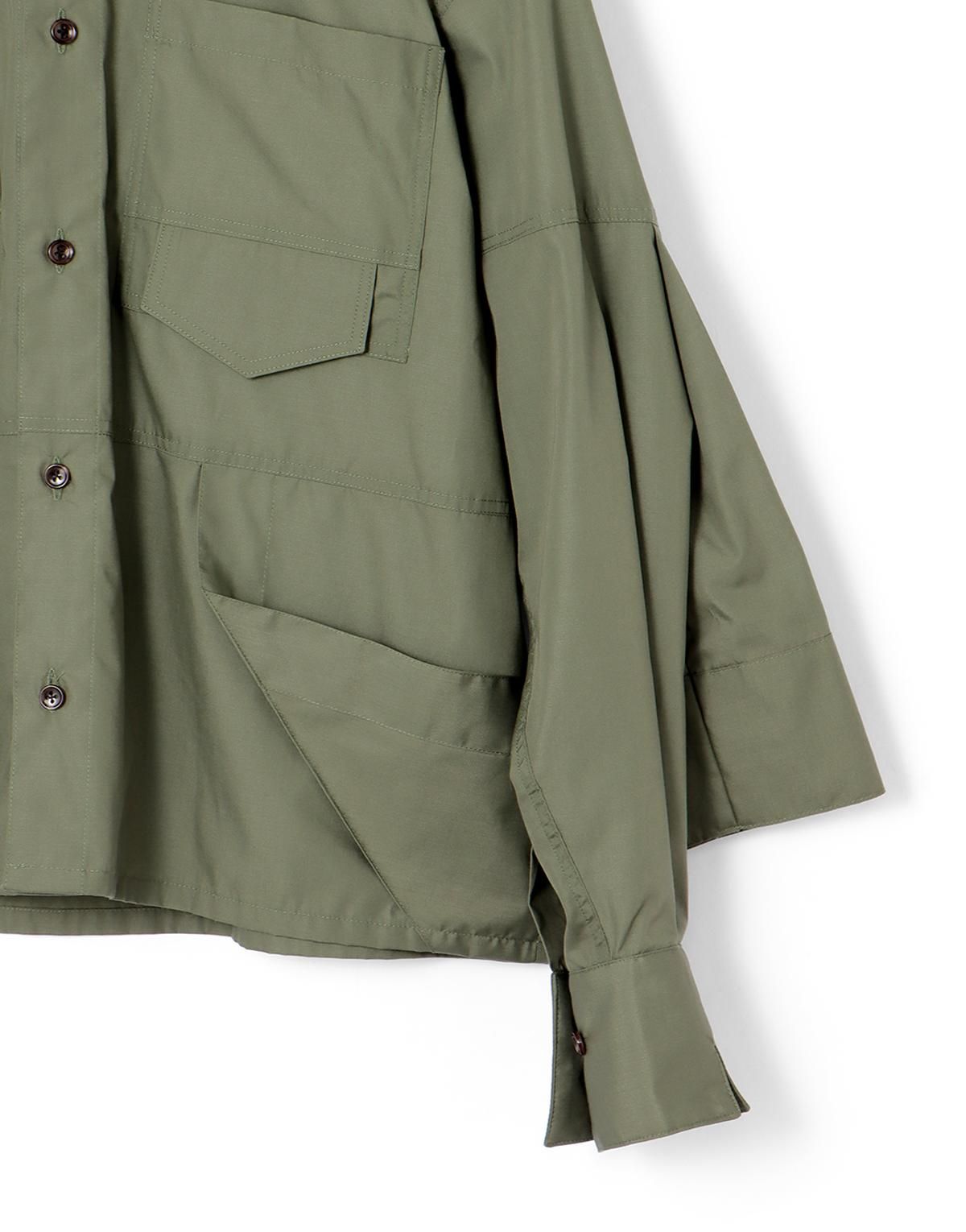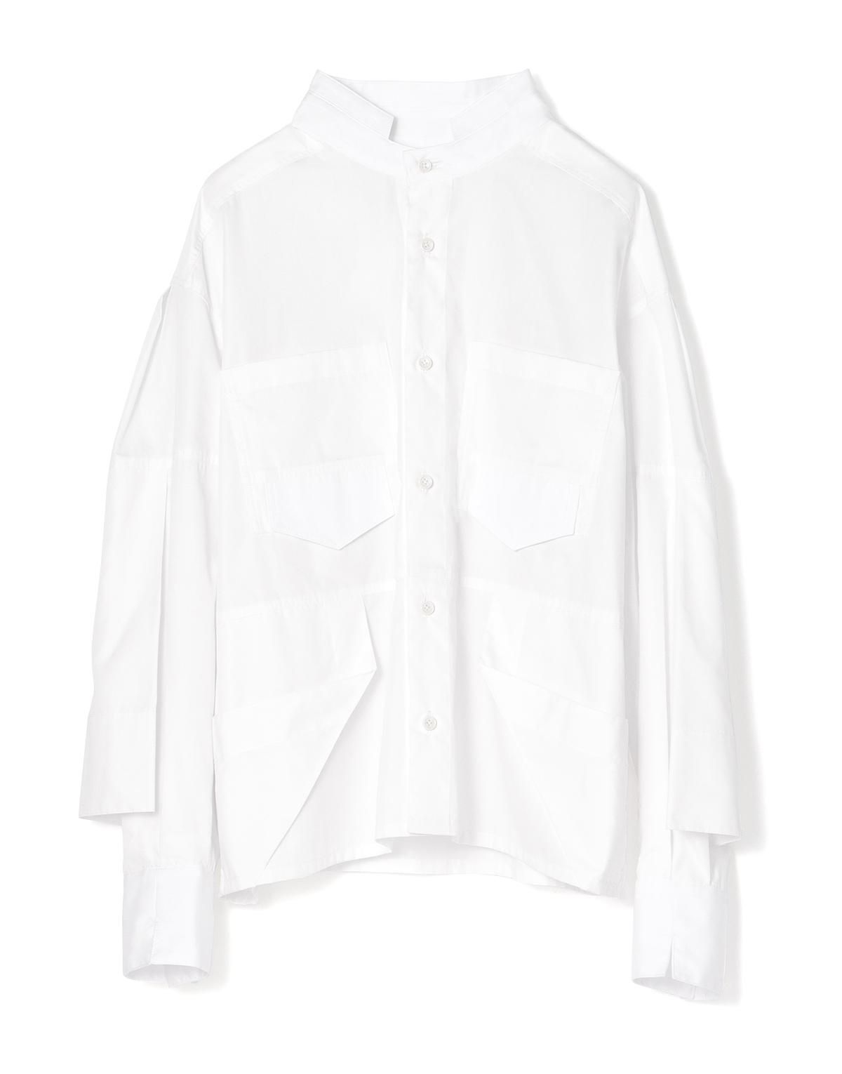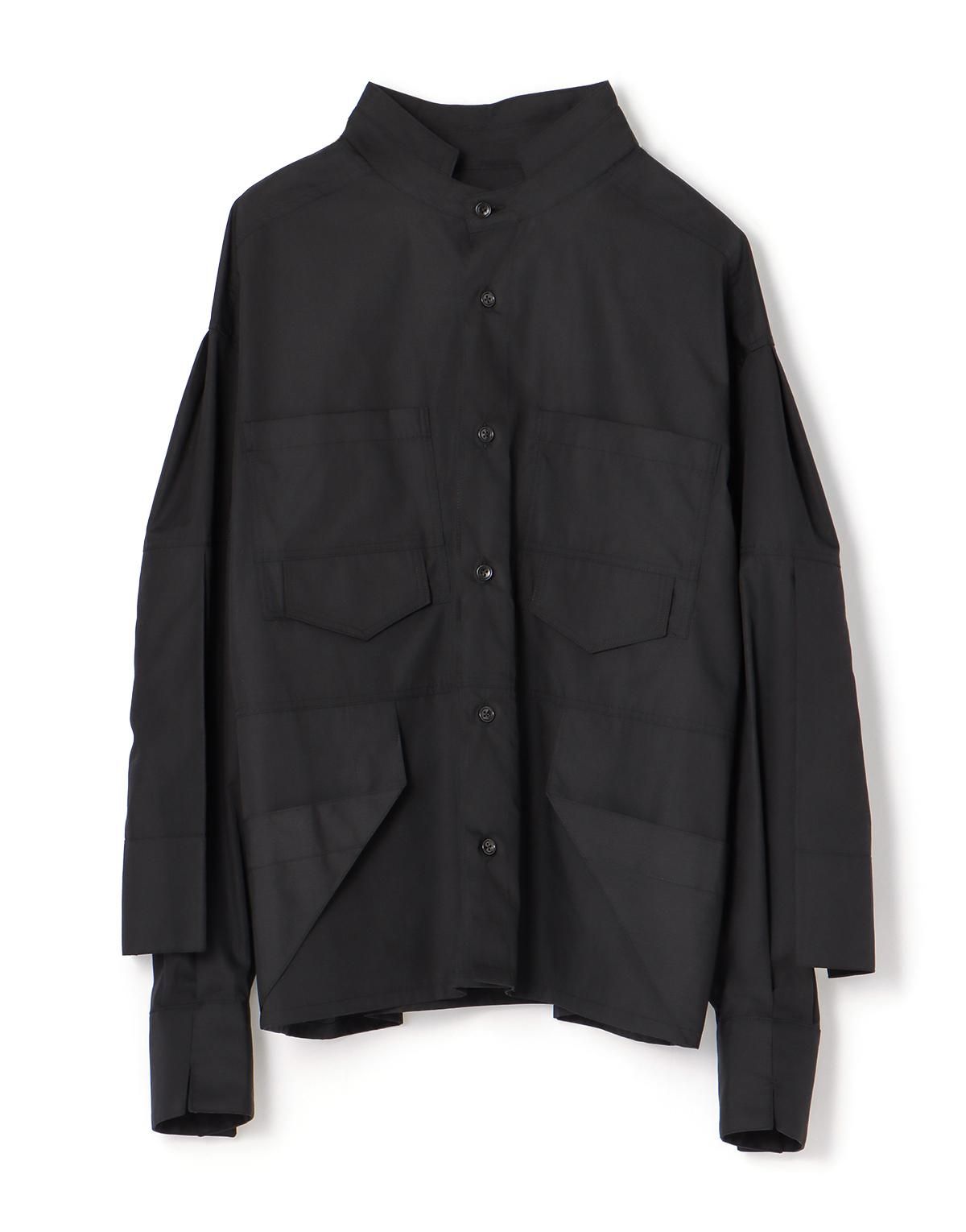 UNISEXSHIRT 前身頃に大胆なポケットのデザイン。袖が二重に重ねたザインも特徴的。