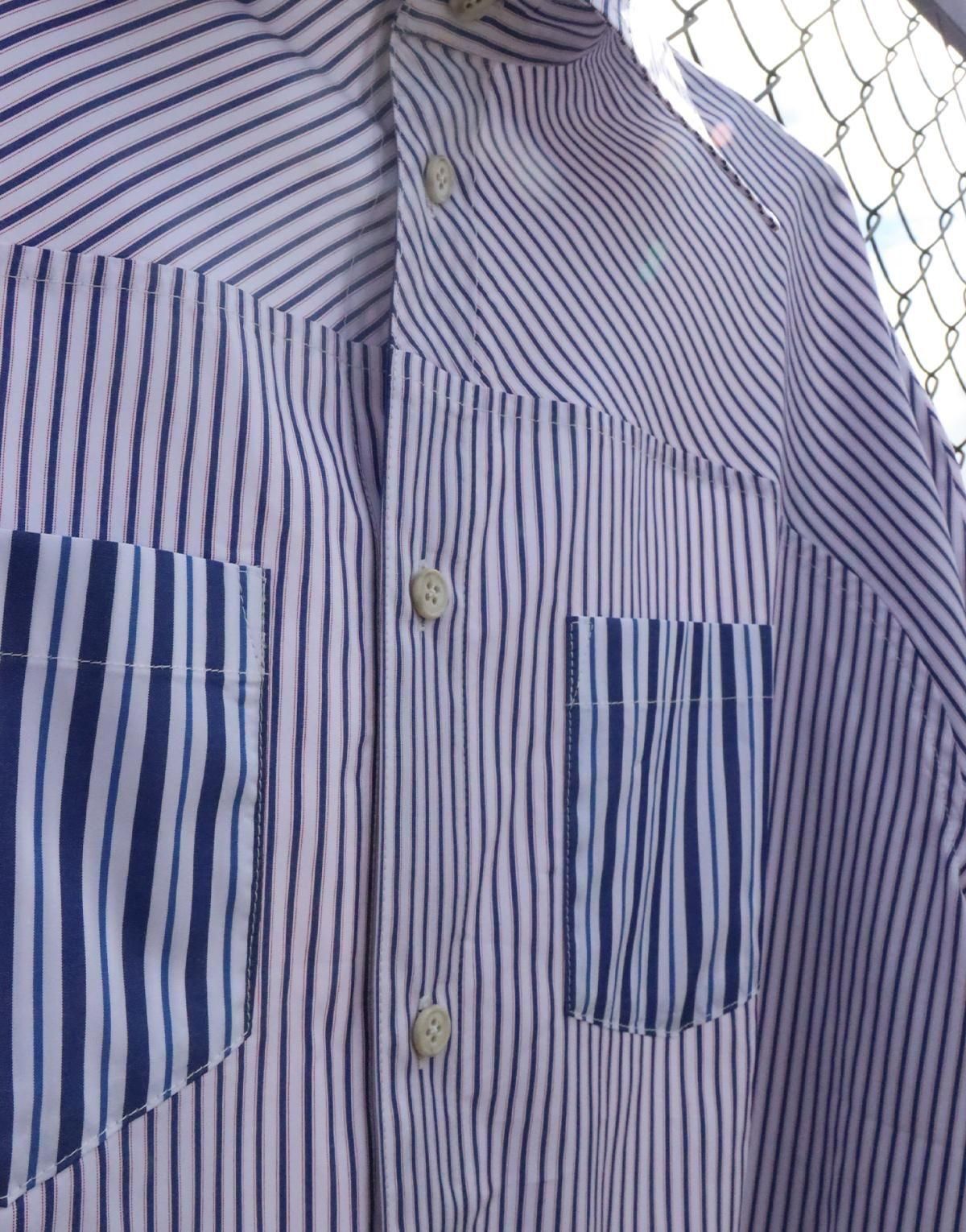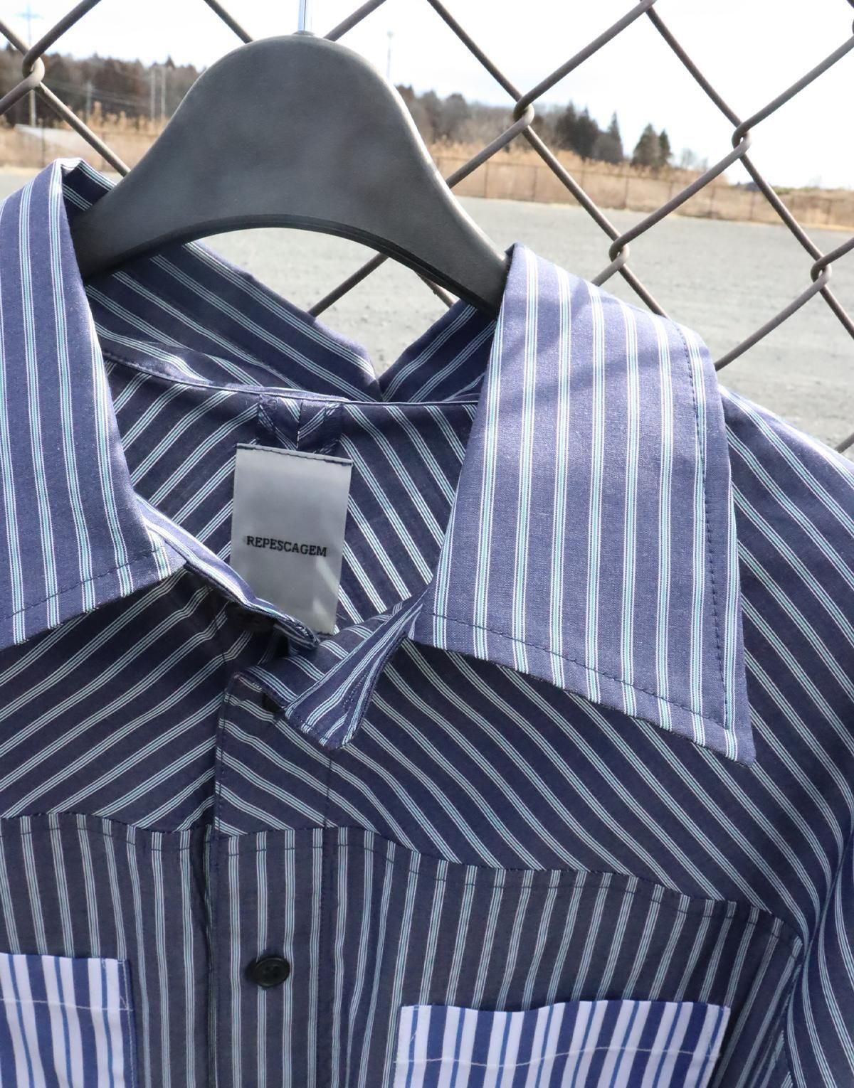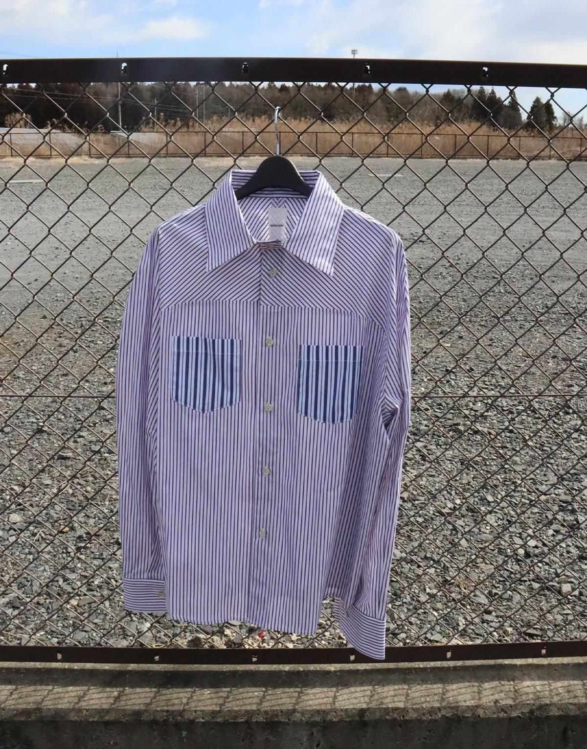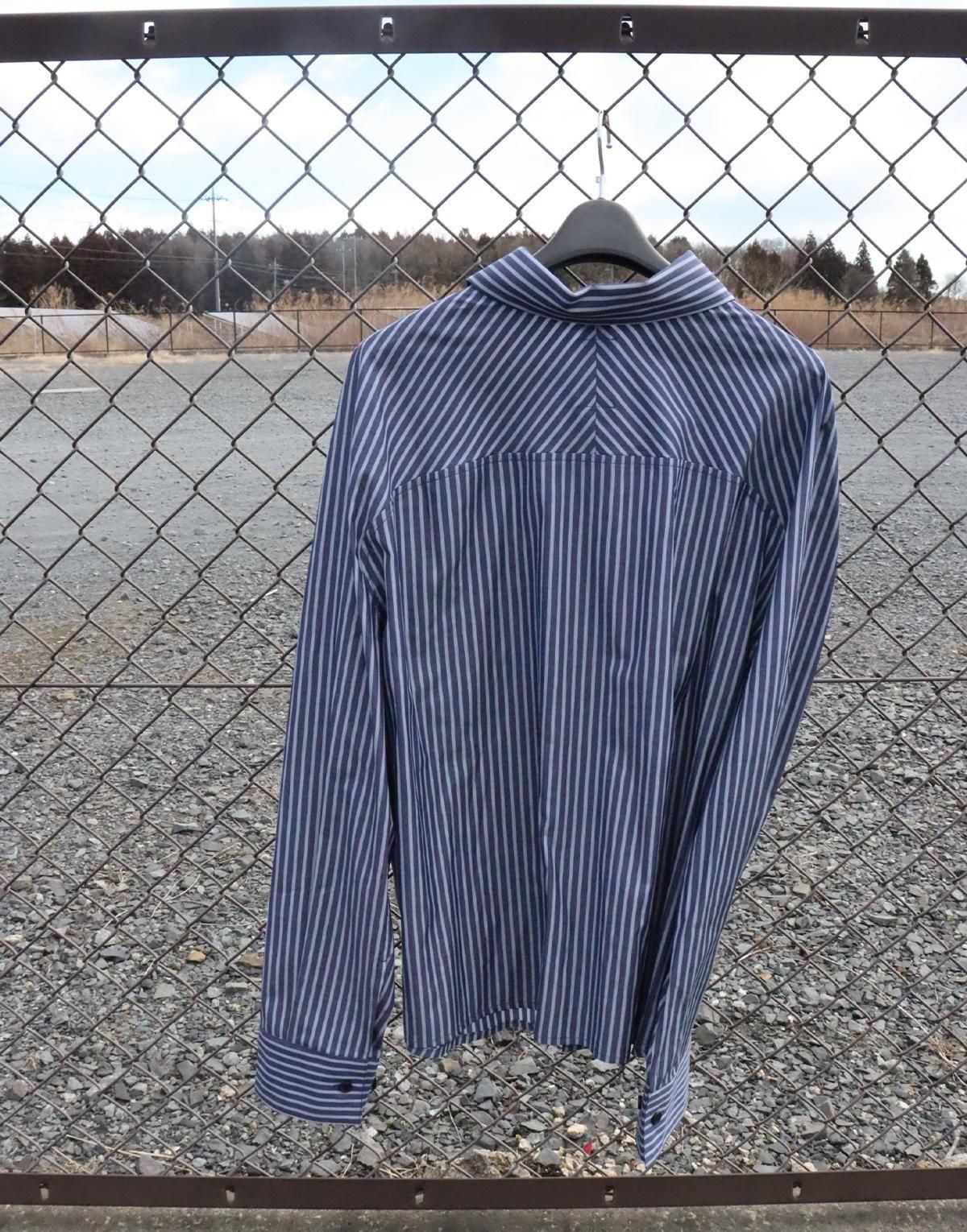 UNISEXSHIRTポイントは袖のベルト、衿、前身頃のポケット。ゆったりとしたシルエットでインナーを自由に組み合わせ可能に。