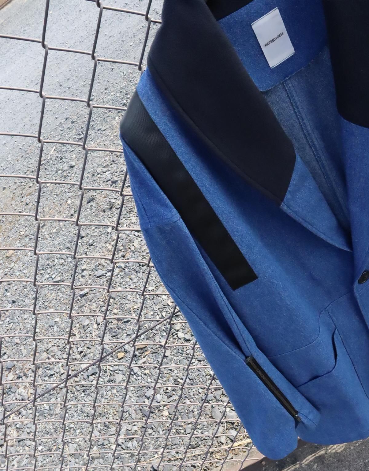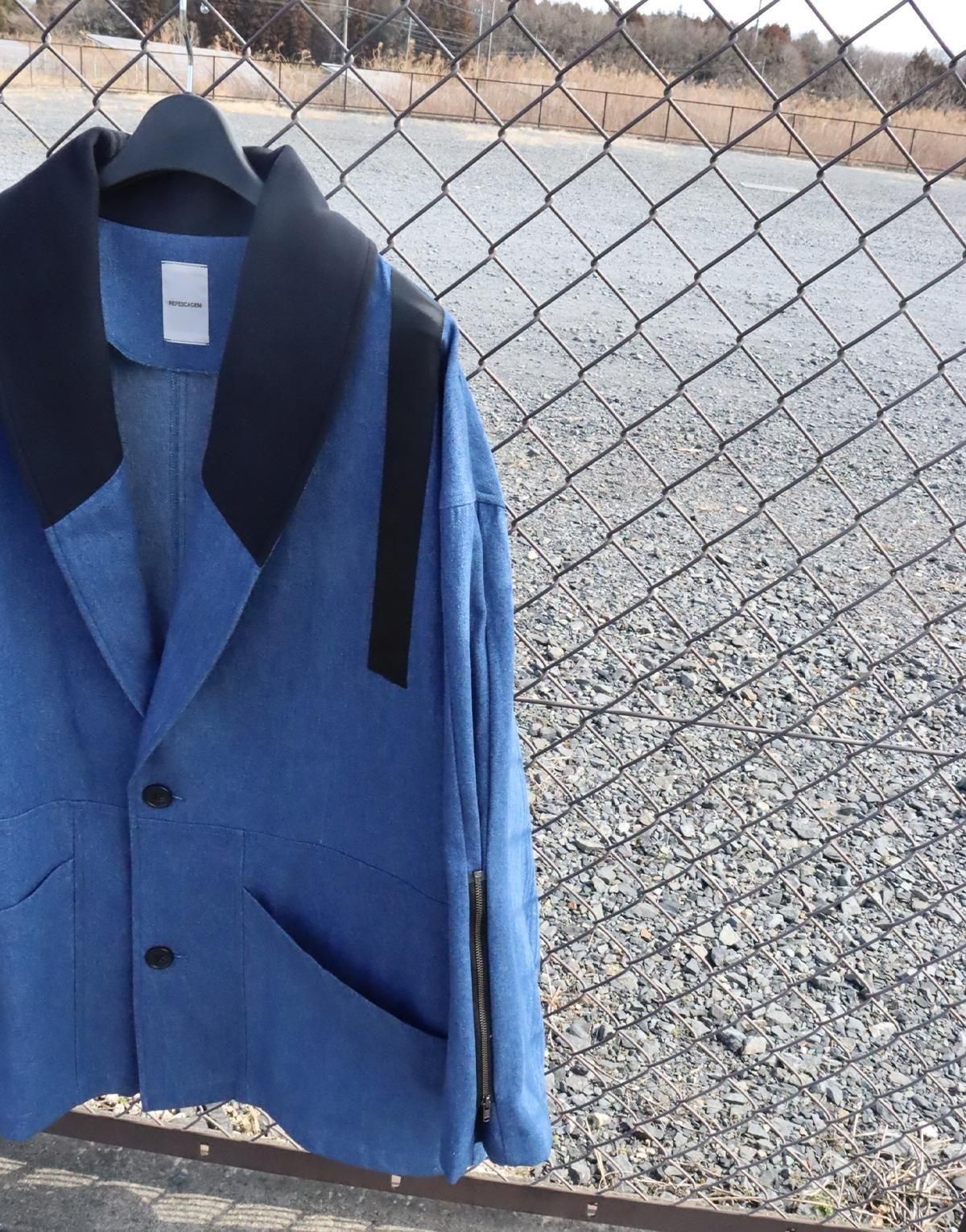 UNISEXJACKETやや厚めのインディゴデニム。ウォッシュ・ブリーチ加工により、色・風合いに変化を持たせることができます。袖にはオープンファスナーをつけ、衿の切替はなめらかな風合いの中肉厚でボリュームを抑えたライトタイプのフリースを使用。