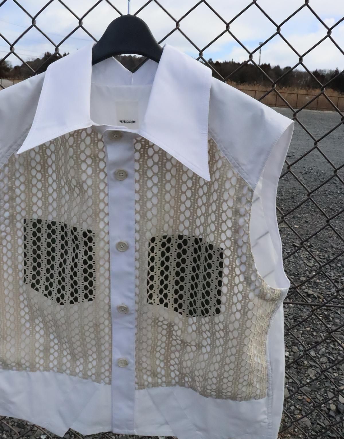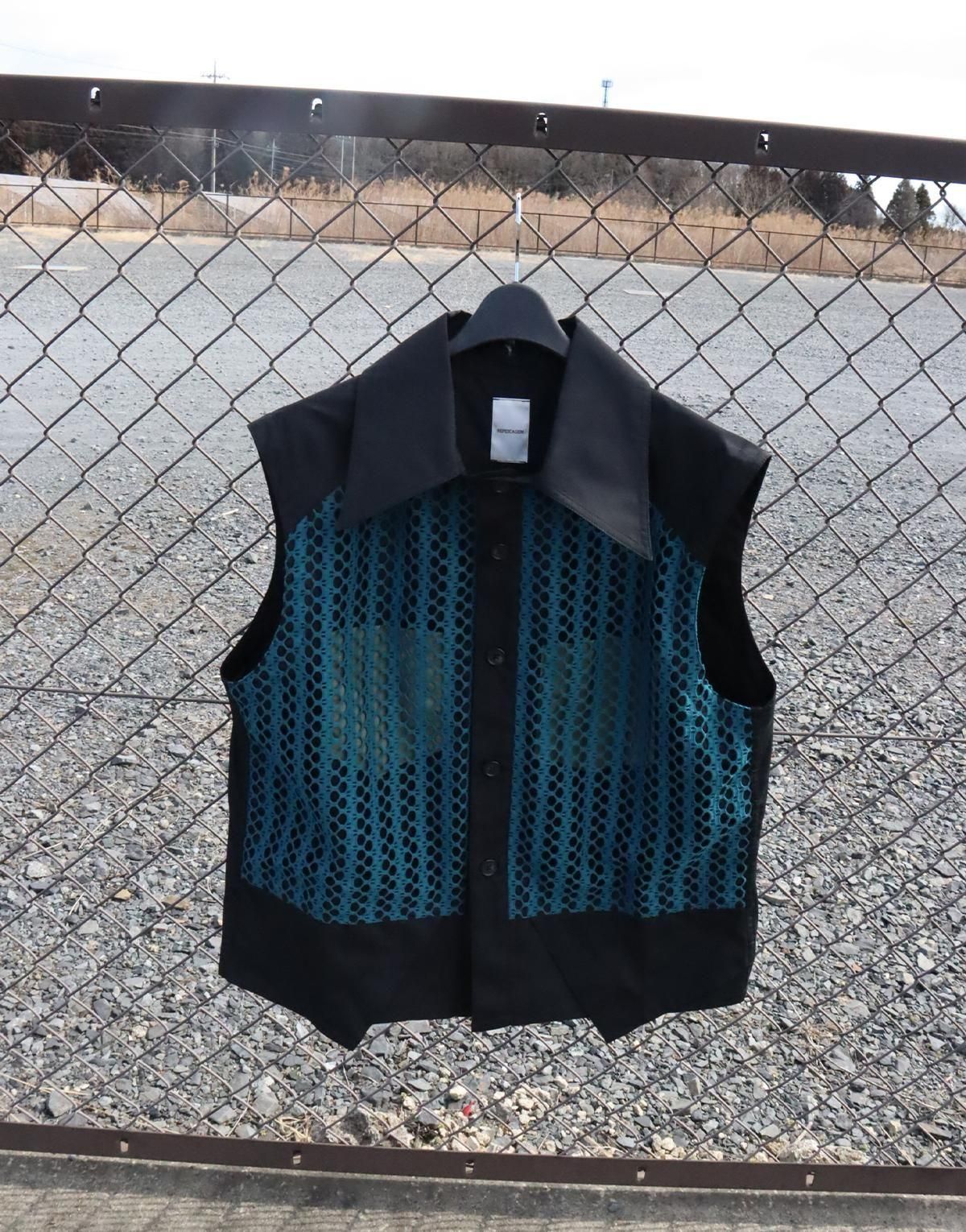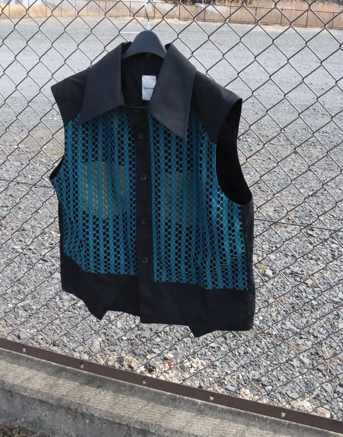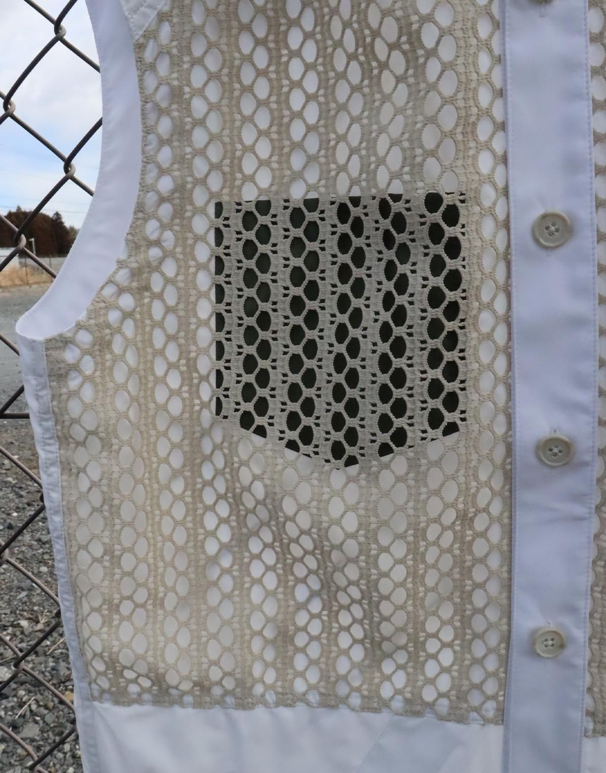 UNISEXVEST表地はペットボトルや繊維屑などが原料のエコペットポリエステルを使用した、サスティナブルな薄手ブロードにメッシュを被せたデザイン。ポケットはダミー。